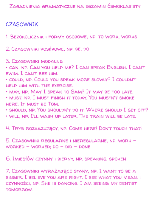 Zagadnienia gramatyczne na egzamin ósmoklasisty