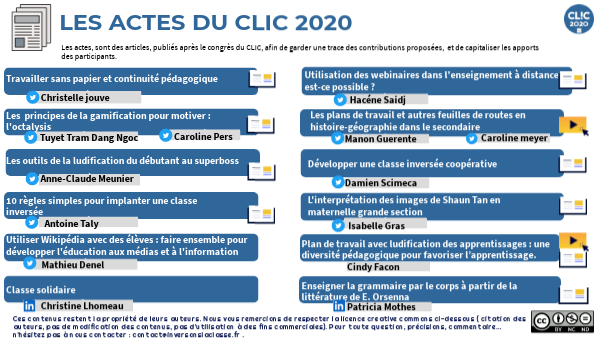 Les actes, sont des articles, publiés après le congrès du CLIC, afin de garder une trace des contributions proposées, et de capitaliser les apports des participants.