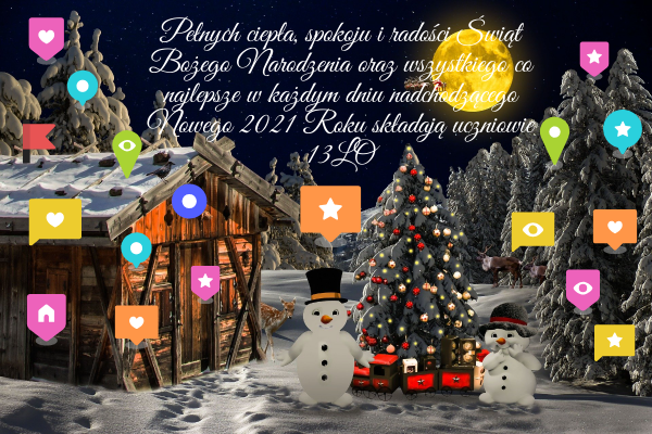Pełnych ciepła, spokoju i radości Świąt Bożego Narodzenia oraz wszystkiego co najlepsze w każdym dniu nadchodzącego Nowego 2021 Roku składają uczniowie 13LO