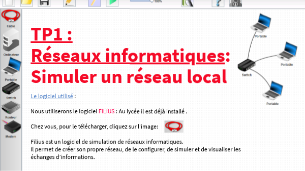 Au lycée il est déjà installé . Chez vous, pour le télécharger, cliquez sur l'image: Filius est un logiciel de simulation de réseaux informatiques.