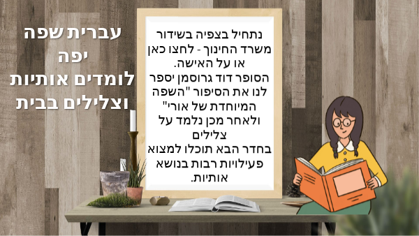 עברית שפה יפה לומדים אותיות וצלילים בבית