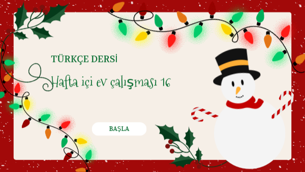 Türkçe Dersi Hafta İçi Ev Çalışması 16