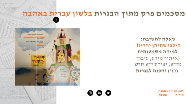 הילכו שתיהן יחדיו? למידה משמעותית (איתור מידע, עיבוד מידע, יצירת ידע חדש וכו') ולמידה לקראת הבגרות. מצרפת מצגת, ובה קישור לעבודות נוצצות ומסכמות של תלמידים, או "בניינים להשכיר - הסיפור האמיתי"