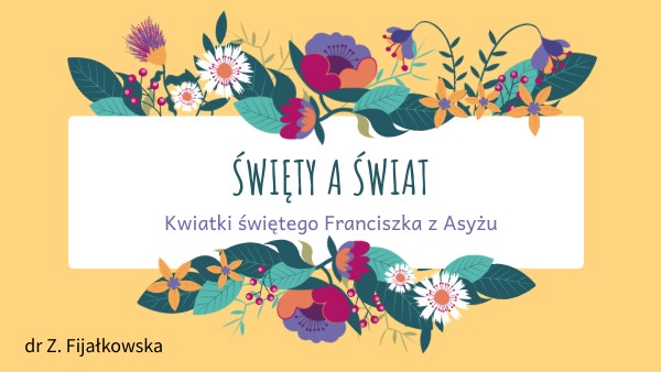 Kwiatki św. Franciszka to anonimowy zbiór 50 legend o życiu świętego. Powstały w XII-XIII wieku, są prawdopodobnie zapisem ustnych przekazów. Tytuł pochodzi z łacińskiego florilegium ('zbiór kwiatów, bukiet'), którym nazywano zbiór cytatów lub aforyzmów. Kwiatki św. Franciszka nie są florilegium w tym znaczeniu! Sam Franciszek zostawił po sobie pisma, w tym regułę zakonu, Dekalog oraz Pieśń słoneczną albo pochwałę stworzeń. Franciszek w swoim życiu starał się naśladować Chrystusa: żył ubogo, ale nie ascetycznie, czerpał radość z życia, kochał ludzi i im pomagał (m.in. dbając o trędowatych). Franciszek starał się nawracać na chrześcijaństwo muzułmanów podczas swojej pielgrzymki do Ziemi Świętej. W 1219 roku Franciszek wyruszył na Bliski Wschód. W Egipcie spotkał się z sułtanem Melek el-Kamelem. Zaproponował mu, by odrzucił Mahometa, a przyjął Chrystusa. Mimo wielkiej obrazy, jaką była taka propozycja, sułtan był pod wrażeniem odwagi Franciszka i odesłał go, dając mu firman na drogę, by nikt w zasięgu wojsk sułtańskich nie skrzywdził go. Podczas postu w pustelni w Alwerni otrzymał stygmaty.