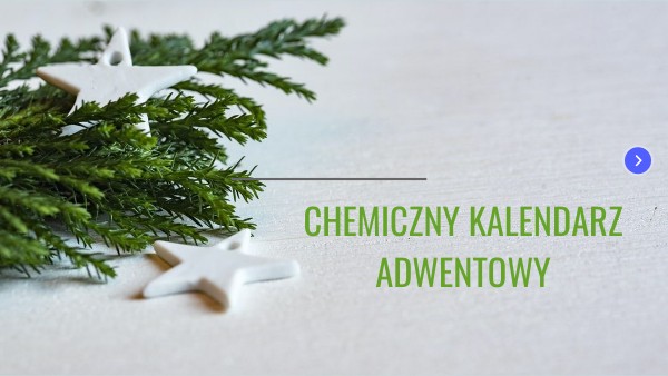 Wielu z nas kalendarz adwentowy kojarzy się ze świątecznym oczekiwaniem. Aby uprzyjemnić czas oczekiwania na święta Bożego Narodzenia, uczniów z klasy 7 i 8 zaprosiłam do wspólnej podróży w świat chemicznych tajników świątecznej atmosfery. Zagadki i zadania chemiczno–świąteczne ukryte były w kalendarzu. Dla wytrwałych "podróżników" po chemicznych zadaniach czekają wyższe oceny z chemii i przede wszystkim dobra zabawa w tym przedświątecznym czasie, a dla osoby która najlepiej rozwiąże wszystkie zadania będzie mała niespodzianka.