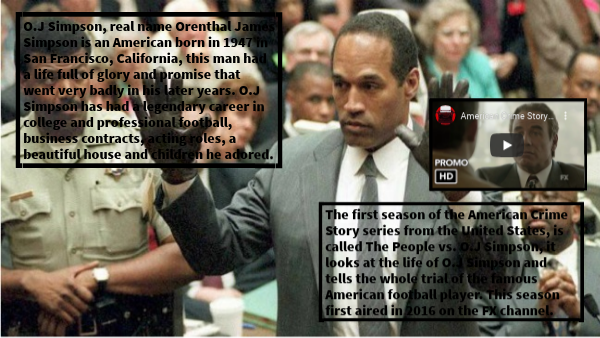 The first season of the American Crime Story series from the United States, is called The People vs. O.J Simpson, it looks at the life of O.J Simpson and tells the whole trial of the famous American football player. This season first aired in 2016 on the FX channel.
