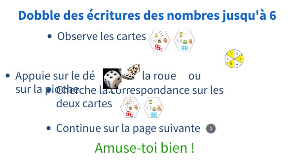 Dobble 2 des différentes écritures des nombres jusqu'à 6