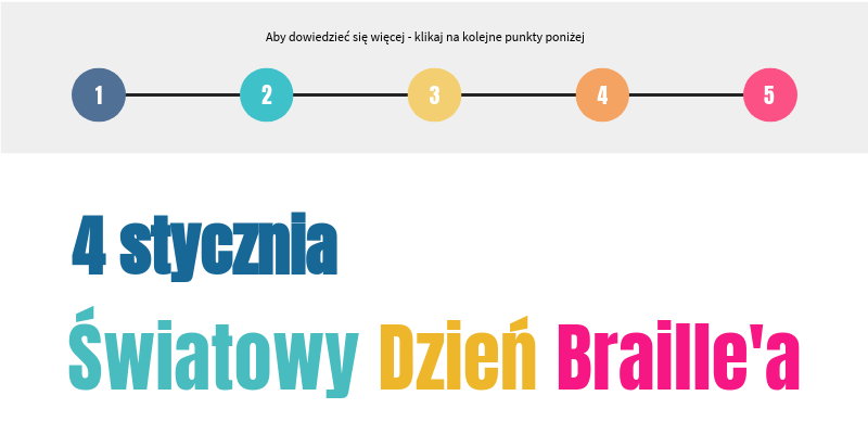 Światowy Dzień Braille’a został ustanowiony z inicjatywy ONZ i obchodzony jest 4 stycznia - w rocznicę urodzin twórcy tego pisma - Louisa Braille'a. Światowy Dzień Braille'a jest obchodzony w celu podniesienia świadomości znaczenia języka Braille'a jako środka komunikacji w pełnej realizacji praw człowieka dla osób niewidomych i niedowidzących. Pierwszy oficjalny Światowy Dzień Braille'a obchodzony był 4 stycznia 2019 roku.