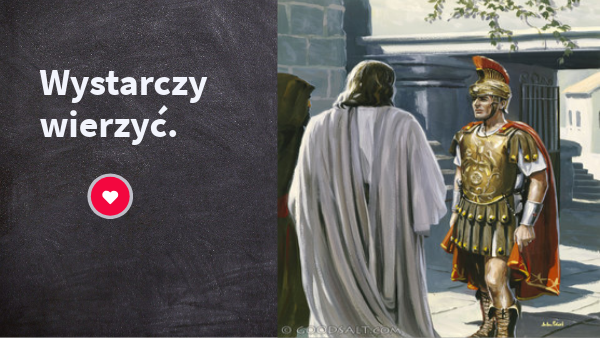 Zapisz Katecheza Temat: Wystarczy wierzyć. „Panie nie jestem godzien, abyś przyszedł do mnie, ale powiedz tylko słowo, a będzie uzdrowiona dusza moja." Jak setnik wierzymy, że Jezus ma moc czynienia cudów, wystarczy Jego SŁOWO.