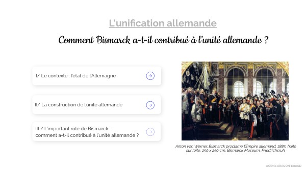 Bismarck = rôle centrale dans la création de l’unité allemande parce qu’il y a beaucoup contribué.
