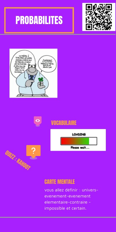 vous allez définir : univers-evenement-evenement elementaire-contraire -impossible et certain.