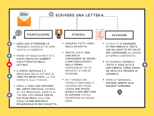 Spiegazione delle tre fasi del processo di scrittura di ogni tipologia testuale, con un focus sulla lettera per studenti della scuola secondaria di primo grado.