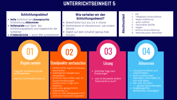 - Rollenspiele zum Üben des Schlichtungsablaufs und Kooperation der Schlichter
