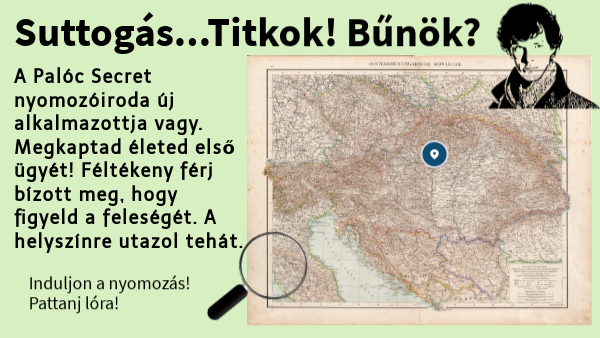 A Palóc Secret nyomozóiroda új alkalmazottja vagy. Megkaptad életed első ügyét! Féltékeny férj bízott meg, hogy figyeld a feleségét. A helyszínre utazol tehát.