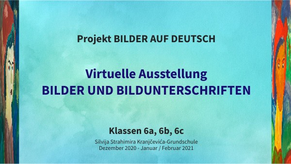 PROJEKTNAME / NAZIV PROJEKTA: BILDER AUF DEUTSCH / SLIKE NA NJEMAČKOM PROJEKTAUFGABE / PROJEKTNI ZADATAK: Eine Bildunterschrift schreiben / Pisanje legende uz sliku HAUPTLERNZIEL / GLAVNI ISHOD ZADATKA: OŠ (2) NJ A.6.5. Učenik piše vrlo kratak i vrlo jednostavan tekst o slici. / Der Schüler kann einen sehr kurzen und einfachen Text zum Bild schreiben. ERGEBNIS DER AUFGABE / REZULTAT ZADATKA: virtuelle Ausstellung der Bilder aus dem Kunstunterricht sowie der Bildunterschriften aus dem Deutschunterricht / virtualna izložba slika nastalih na nastavi Likovne kulture i legendi nastalih na nastavi njemačkoga jezika