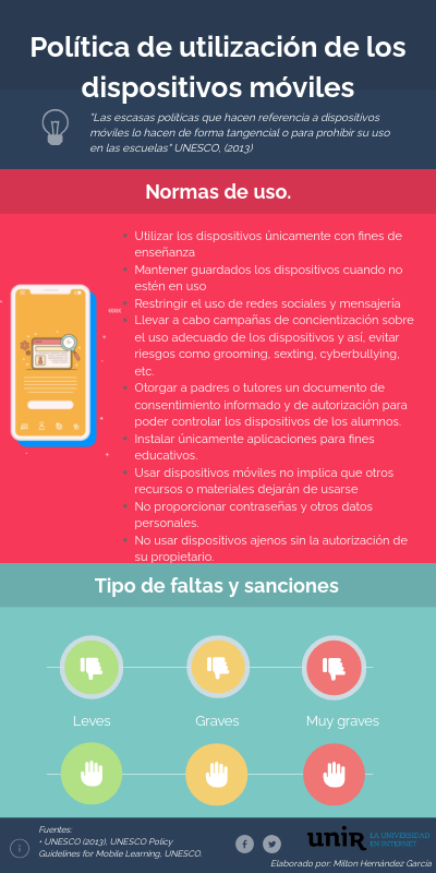 "Las escasas políticas que hacen referencia a dispositivos móviles lo hacen de forma tangencial o para prohibir su uso en las escuelas" UNESCO, (2013)