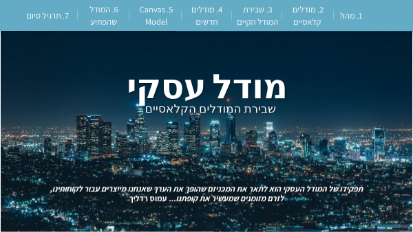 כתבו בתיבת הטקסט הבאה מודל אחד שלא הכרתם והאם אתם רואים אותו כמודל שימושי בתחום הסטרט-אפ שלכם *כל התשובות יגיעו במרוכז למדריך/מנהל קבוצה