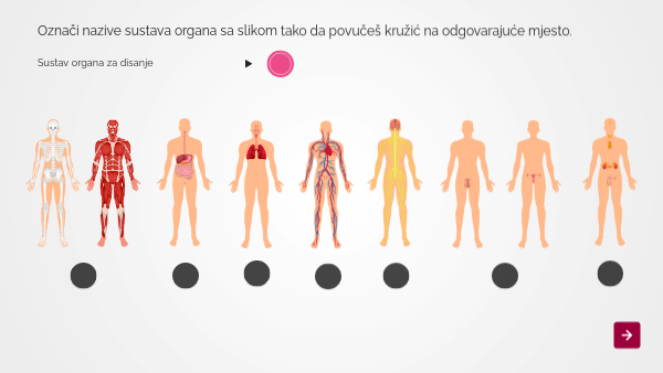 Označi nazive sustava organa sa slikom tako da povučeš kružić na odgovarajuće mjesto.