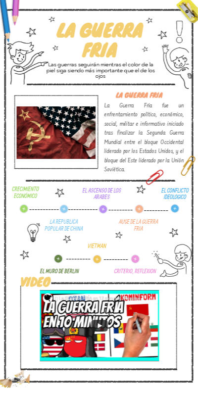 La Guerra Fría fue un enfrentamiento político, económico, social, militar e informativo iniciado tras finalizar la Segunda Guerra Mundial entre el bloque Occidental liderado por los Estados Unidos, y el bloque del Este liderado por la Unión Soviética.