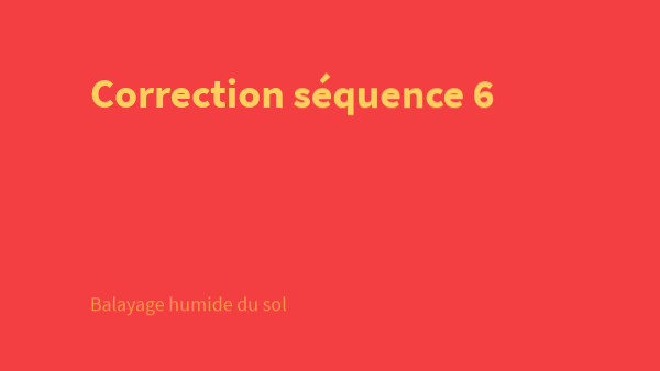 Pour réaliser un balayage humide : - Matériel : _ _ _ _ _ Balai trapèze et gaze pré-imprégnée_ _ _ _ _ _ - Techniques : 1) _ _ _de la godille _ _ _ _ _pour les endroits encombrés 2) _ _ _ du poussé_ _ _ _ _ _pour les endroits non encombrés comme les couloirs - Contrôle : _ _ _ _ visuel_ _ _ _ _ _ _ _ _ _ _ _ _ - Type de sol : _ _ _ _ sols dures et lisses_ _ _ _ _ _ _ _ _ _ _ _ _ - Type de salissures ramassées : _ _ _ _salissures non adhérentes _ Le balayage humide est une étape de _ _ nettoyage_ _ _ _ _ _ _ _ . On cherche à obtenir _ la propreté du sol_ _ _ _ _ _ _ _ _ _ _ _ _ _