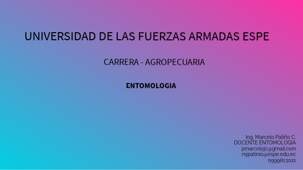 Ing. Marcelo Patiño C.DOCENTE ENTOMOLOGIA pmarcelojc@gmail.com mjpatinio@espe.edu.ec 0999813021