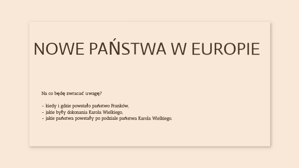Na co będę zwracać uwagę? - kiedy i gdzie powstało państwo Franków, - jakie były dokonania Karola Wielkiego, - jakie państwa powstały po podziale państwa Karola Wielkiego.