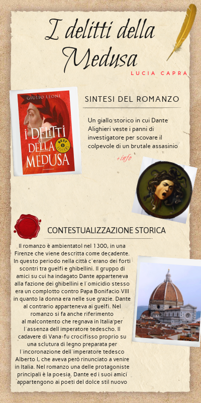 La lettura del libro inizialmente non è stata facile per il linguaggio antico utilizzato dallo scrittore. Andando avanti con la lettura ero sempre più intrigata dalle vicende che accadevano e cercare di scoprire il seguito degli eventi mi stimolava a continuare a leggre. Dalle descrizioni fatte dall'autore mi sentivo immersa nell atmosfera della Firenze di quel periodo, quasi come facessi parte della storia. Fino all'ultimo c'era suspense nello scoprire chi fosse l'assassino. L'altra particolarità era immaginare Dante Alighieri, il sommo poeta, nelle vesti di un investigatore. Consiglierei questo libro agli amici perché è intrigante e coinvolgente .