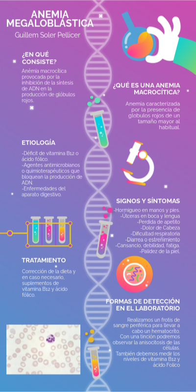 Anemia caracterizada por la presencia de globulos rojos de un tamaño mayor al habitual.