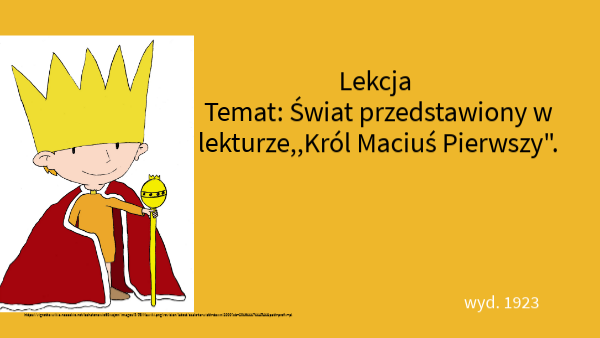 Lekcja Temat: Świat przedstawiony w lekturze,,Król Maciuś Pierwszy".