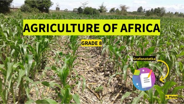 The only country where agriculture meet the feeding needs (zaspokajać potrzeby żywieniowe) of its citizens is South Africa (Republika Południowej Afryki - RPA). In this country only 5% of people work in agriculture. However, the agriculture is so intensive and modernised that they can even produce FOOD SURPLUSES (nadwyżki żywności). In other countries of Africa the agriculture is rather primitive and extensive, and highly dependent on natural conditions. The yield (plony) isn't too big, it is weakly mechanised and the fertilisers are rarely used. However, some countries play an important role in producing and exporting some products: