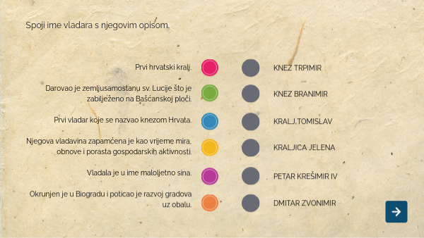 Prvi hrvatski kralj. Darovao je zemljusamostanu sv. Lucije što je zabilježeno na Bašćanskoj ploči. Prvi vladar koje se nazvao knezom Hrvata. Njegova vladavina zapamćena je kao vrijeme mira, obnove i porasta gospodarskih aktivnosti. Vladala je u ime maloljetno sina. Okrunjen je u Biogradu i poticao je razvoj gradova uz obalu.