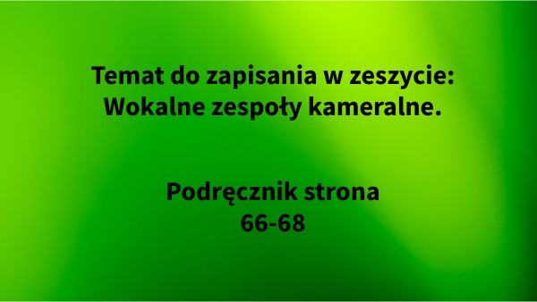 Temat do zapisania w zeszycie: Wokalne zespoły kameralne.