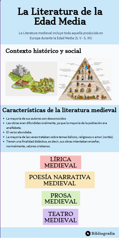 La Literatura medieval incluye toda aquella producida en Europa durante la Edad Media (S. V - S. XV)