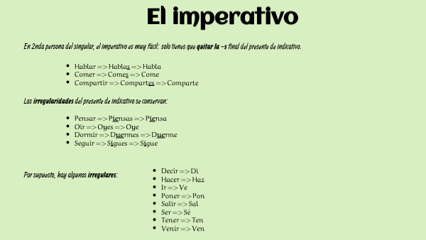 En 2nda persona del singular, el imperativo es muy fácil: solo tienes que quitar la -s final del presente de indicativo.