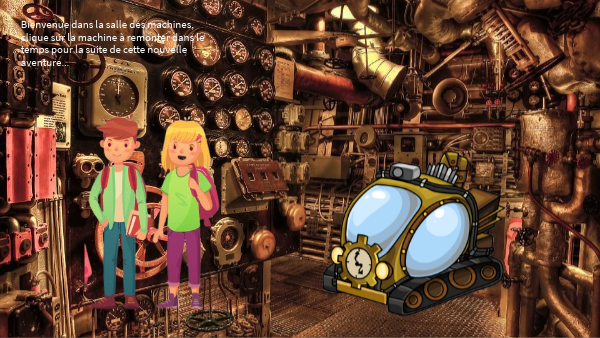 Bienvenue dans la salle des machines, clique sur la machine à remonter dans le temps pour la suite de cette nouvelle aventure...