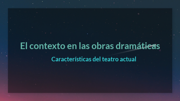 Características del teatro actualLa temática de las obras dramáticas y teatrales contemporaneas es muy diversas. La mayoría retrata situaciones de la vida moderna -como los desacuerdos y diferencias entre hombre y mujer, la infidelidad o la cesantía-; otras se inspiran en hechos históricos como las guerras del siglo XX, conflictos civiles, etc. Además, son comunes las adaptaciones de obras narrativas al mundo de las tablas. Las mayoría de las compañías de teatro actual tiene una postura innovadora en cuanto a la relación que se establece entre actores - personajes y espectadores. Además, se caracterizan por incorporar elementos circenses (espectáculos de circos de uno propio) que hacen del teatro una expresión integral. Es así como podemos encontrar los siguientes conceptos.