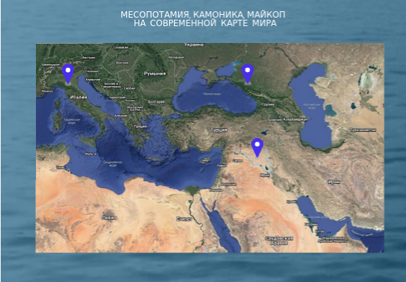 Месопотамия, Камоника, Майкоп на современной карте мира