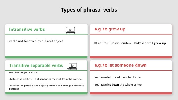 2. Rodzielne czasowniki frazowe z dopełnieniem (Separable and transitive phrasal verbs)W typie drugim występuje dopełnienie (object), czyli przedmiot lub osoba, na której wykonywana jest czynność. Czasownik może być oddzielony od przyimka lub przysłówka w zdaniu. Jak rozpoznać takie czasowniki? W słowniku występują ze słowem something (coś) lub somebody (ktoś) między czasownikiem a przyimkiem/przysłówkiem.to give sth away – oddać cośHe gave away all his toys. / He gave all his toys away.Oddał wszystkie swoje zabawki. (all his toys jest w tym przypadku dopełnieniem)
