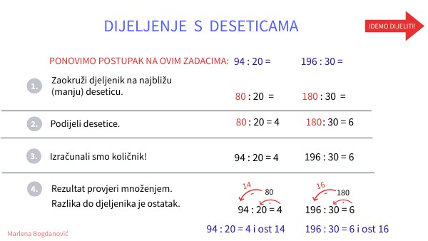 Rezultat provjeri množenjem. Razlika do djeljenika je ostatak.