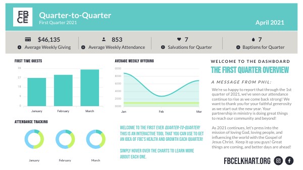 Welcome to the first ever Quarter-to-Quarter!This is an interactive tool that you can use to get an idea of FBC's health and growth each quarter! Simply hover over the charts to learn more about each one.