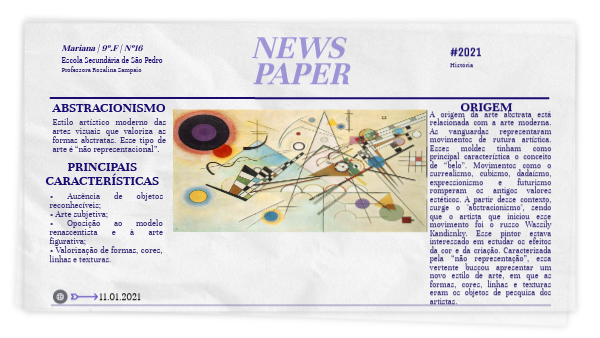 Estilo artístico moderno das artes visuais que valoriza as formas abstratas. Esse tipo de arte é “não representacional”.