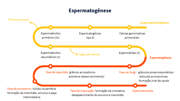 Fase de acrossomo: núcleo na periferia formação da manchete, annulus e peça intermediária