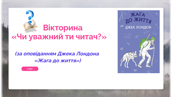 ВІКТОРИНА ЗА ОПОВІДАННЯМ ДЖЕКА ЛОНДОНА "ЖАГА ДО ЖИТТЯ"