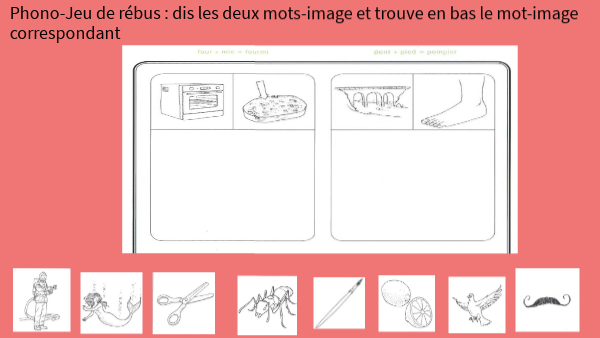 Phono-Jeu de rébus : dis les deux mots-image et trouve en bas le mot-image correspondant