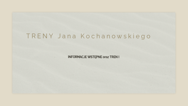 TREN IJest chyba najtrudniejszy do odczytania dla współczesnego czytelnika. Zawiera dużo archaizmów. Dlatego odsłuchaj wersję uwspółcześnioną i oryginalną. Następnie odczytaj tekst w podręczniku strona 86 i zobacz wyjaśnienia archaicznych słów.