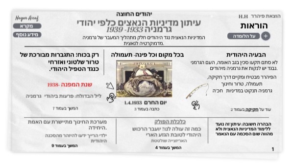 עיתון מדיניות הנאצים כלפי יהודי גרמניה 1933- 1939