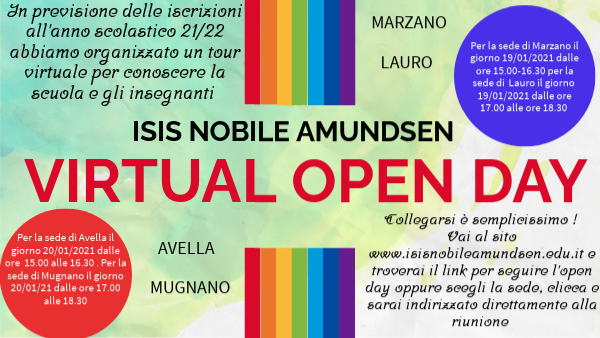 Per la sede di Avella il giorno 20/01/2021 dalle ore 15.00 alle 16.30 . Per la sede di Mugnano il giorno 20/01/21 dalle ore 17.00 alle 18.30