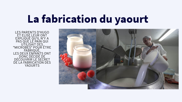 LES PARENTS D'HUGO ET ELISE LEUR ONT EXPLIQUÉ QU'IL N'Y A PAS QUE LE PAIN QUI UTILISAIT DES "MICROBES" POUR ÊTRE FABRIQUÉ. LES DEUX ENFANTS ONT DONC DÉCIDÉ DE DÉCOUVRIR LE SECRET DE LA FABRICATION DES YAOURTS