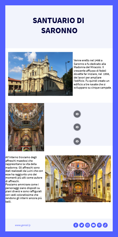 All'interno troviamo degli affreschi maestosi che rappresntano la vita della madonna. Gli affreschi sono stati realizzati da Luini che con esse ha raggiunto uno dei momenti più alti come autore di affreschi. Possiamo ammirare come i personaggi siano disposti su piani diversi e sono raffigurati con vesti coloratissime che rendono gli interni ancora più belli.