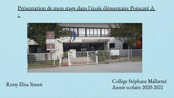 Présentation de mon stage dans l'école élémentaire Poincaré A :